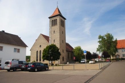 Am Fest Peter und Paul, am 29.6.1952, wurde der erste Spatenstich für die eigene katholische Kirche vollzogen. 1953 wurde schließlich der Grundstein gelegt . Drei Jahre später, am 2.12.1956, wurde die neue Kirche von Domkapitular Dr. Philipp Kremer benediziert. 1958 spendete Herr G.Ledig die erste Kirchenglocke.